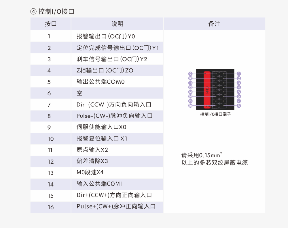 采?FOC磁場定向控制技術(shù)和SVPWM(空間?量調(diào)制)可修改電機(jī)、電機(jī)極對數(shù)、編碼器線數(shù)適配不同電機(jī)?持位置、速度和?矩模式具有?壓、過壓、過載,過流,過溫、編碼器異常保護(hù)和報(bào)警功能可外接能耗泄放功能RS232/485通訊,提供專業(yè)化上位機(jī)調(diào)試和運(yùn)?監(jiān)測軟件